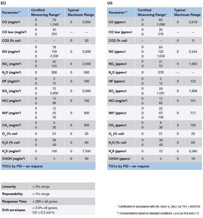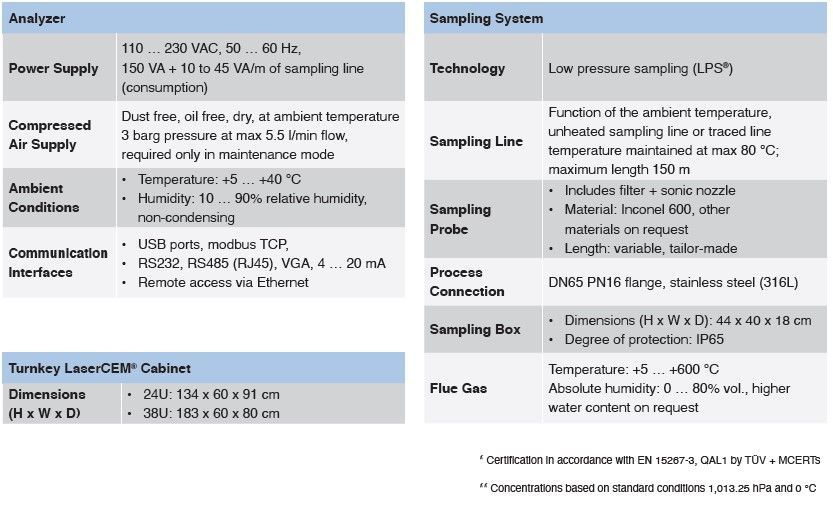 The LaserCEM® is a turnkey multi-gas analysis system for continuous, simultaneous measurement of multiple gases such as HF, HCl, NH3, CH4, SO2, CO, CO2, NO, NO2, O2, N2O, H2S, CHOH, H2O, etc. It benefits from double QAL1 certification (by TÜV and MCERTs) in accordance with EN 15267 and EN 14181 and incorporates the QAL3 functionalities defined by EN 14181.