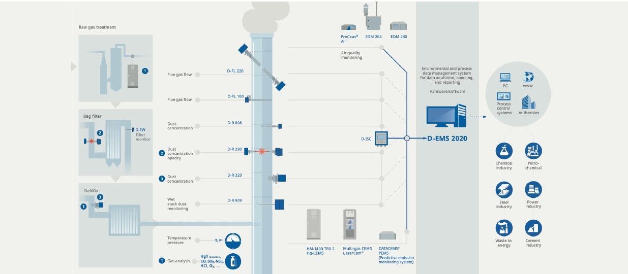 DURAG GROUP offers its customers a complete solution for monitoring stack emissions. In addition to LaserCEM® and mercury (Hg-CEMS) analyzers, DURAG offers continuous dust measurement analyzers, flue gas flow meters and the environmental and process data acquisition, handling, and reporting system needed to effectively monitor and report regulated pollutants. This comprehensive, integrated solution ensures full compliance with local regulatory requirements and offers optimized emission management for industries. DURAG‘s global reach, combined with local support, ensures efficient service and maintenance, enhancing plant operational performance.